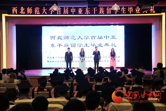 中国甘肃网6月17日讯 (本网记者 张玉芳 文/图) 栀子花开的季节,挥手分别的时刻,又是一年毕业季。17日上午,纽约国际967线路测试首届中亚东干族留学生也迎来了他们的毕业典礼。优美的诗朗诵,曼妙的舞姿,充满回忆的生活暖场视频,镌刻着他们的记忆,饱含着他们对母校的祝福。