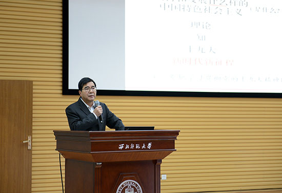 在西北师大,24位党委理论中心组成员“牵手”24位专家学者,一同走进24个学院,与青年学子对谈十九大,把党的十九大精神宣得“严谨生动”,讲得“有滋有味”,青年学子听得“入心入脑”。