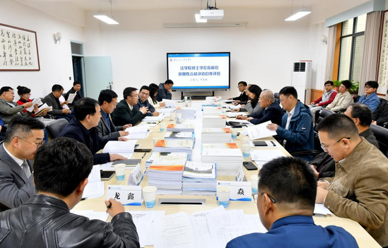 评估专家组现场考察了法学院办学条件,查阅了相关支撑资料,听取了法学院负责人关于法学一级学科硕士学位授权点、法律专业硕士学位授权点近5年建设情况的汇报。随后,专家组与师生代表围绕学位授权点的培养目标和学位标准、奖助体系、课程教学、学术交流等方面进行了质询,并与师生代表进行了交流座谈。